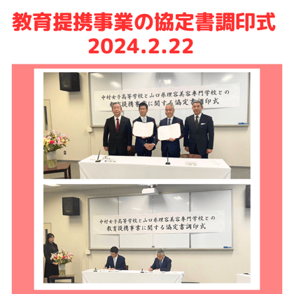 中村女子高等学校と山口県理容美容専門学校が教育提携事業の協定書調印