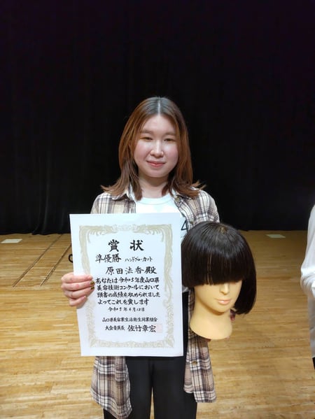 山理美卒業生の南郁亜くん全国理容競技大会出場